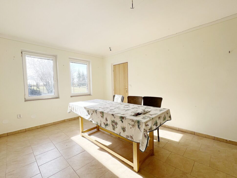 Dům má 1 nadzemní podlaží o celkové rozloze 180 m², uvnitř je členěn na předsíň, obývací pokoj, ložnici, kuchyň se špajzem, jídelnu, koupelnu se sprchovým koutem, samostatné wc s vanou, menší pokoj a několik dalších malých místností pro uskladněnění věcí. Po venkovním schodišti vylezete na půdu, kterou lze do budoucna přestavět na obytné patro. Na dům navazuje prostorná dílna se vstupem do stodoly.