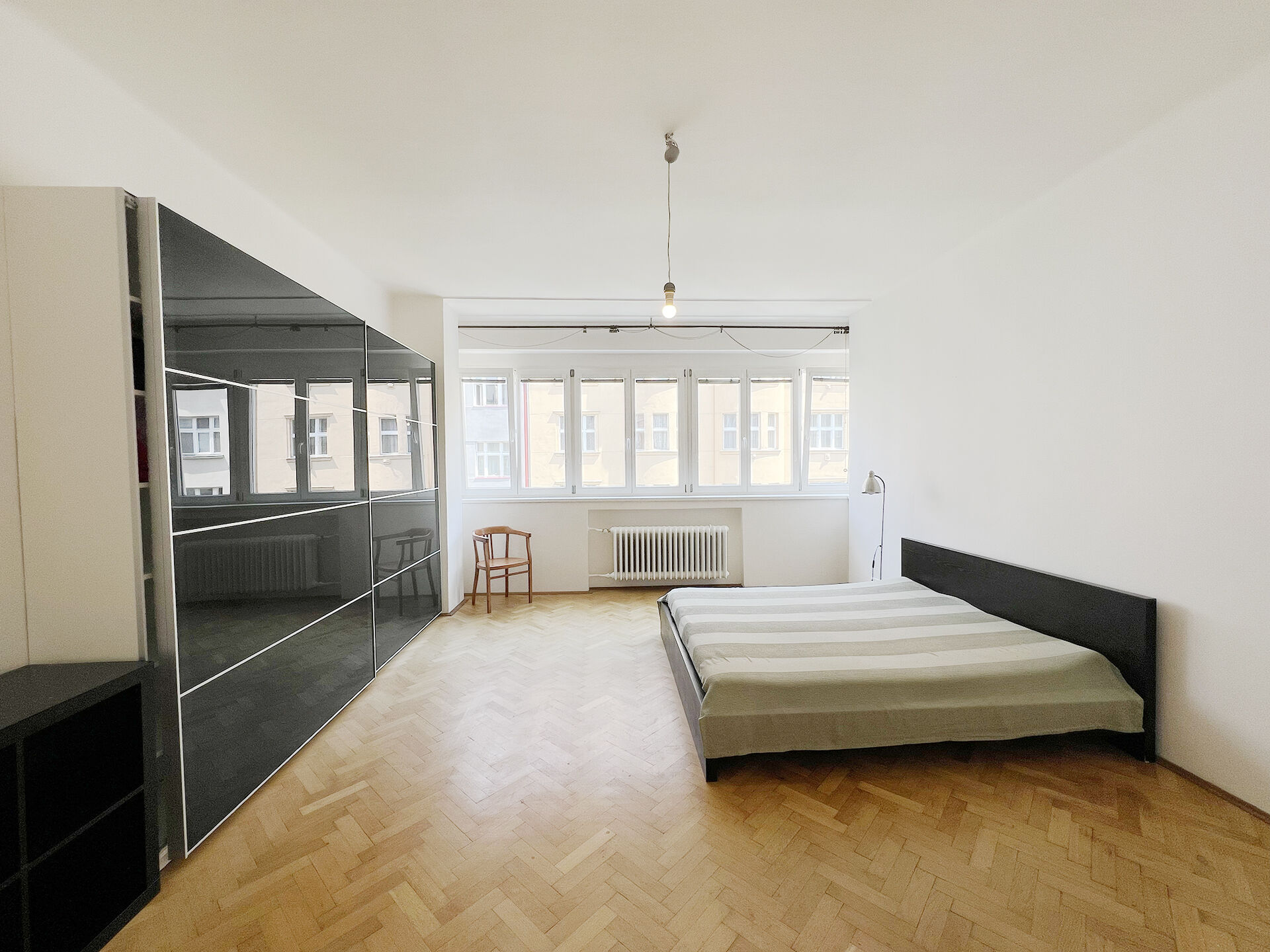 Na podlahové ploše 59 m² naleznete obývací pokoj s kuchyňským koutem, útulnou ložnici, koupelnu s vanou, samostané wc, komoru s pračkou a chodbu. Stylovost bytu podtrhují dřevěná okna, která jsou po celé šíři obou pokojů, dřevěné parketové podlahy, prosklené dřevěné dveře do pokojů, moderní kuchyňská linka a vkusně vybrané obklady a dlažby v koupelně, na wc a v kuchyni. Topení a ohřev vody v bytě jsou zajištěny ústřední kotelnou v domě.